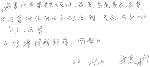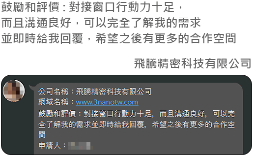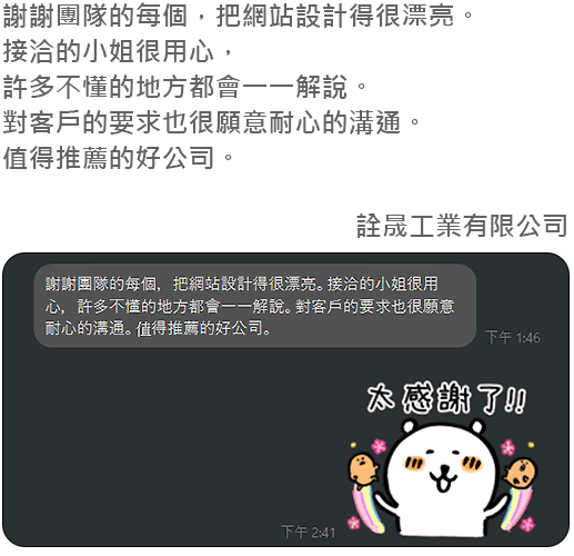 詮晟工業有限公司 客戶迴響 - 2021 專案