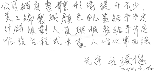 光宇貿易有限公司 客戶迴響 - 2010 專案