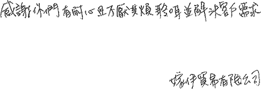 嫁伊貿易有限公司 客戶迴響 - 2016 專案
