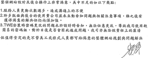 汶騏實業有限公司 客戶迴響 - 2013 專案