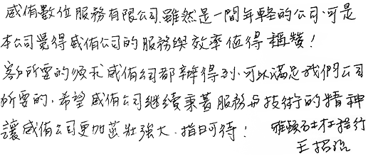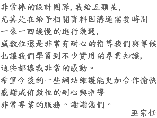 崴期實業有限公司 客戶迴響 - 2019 專案